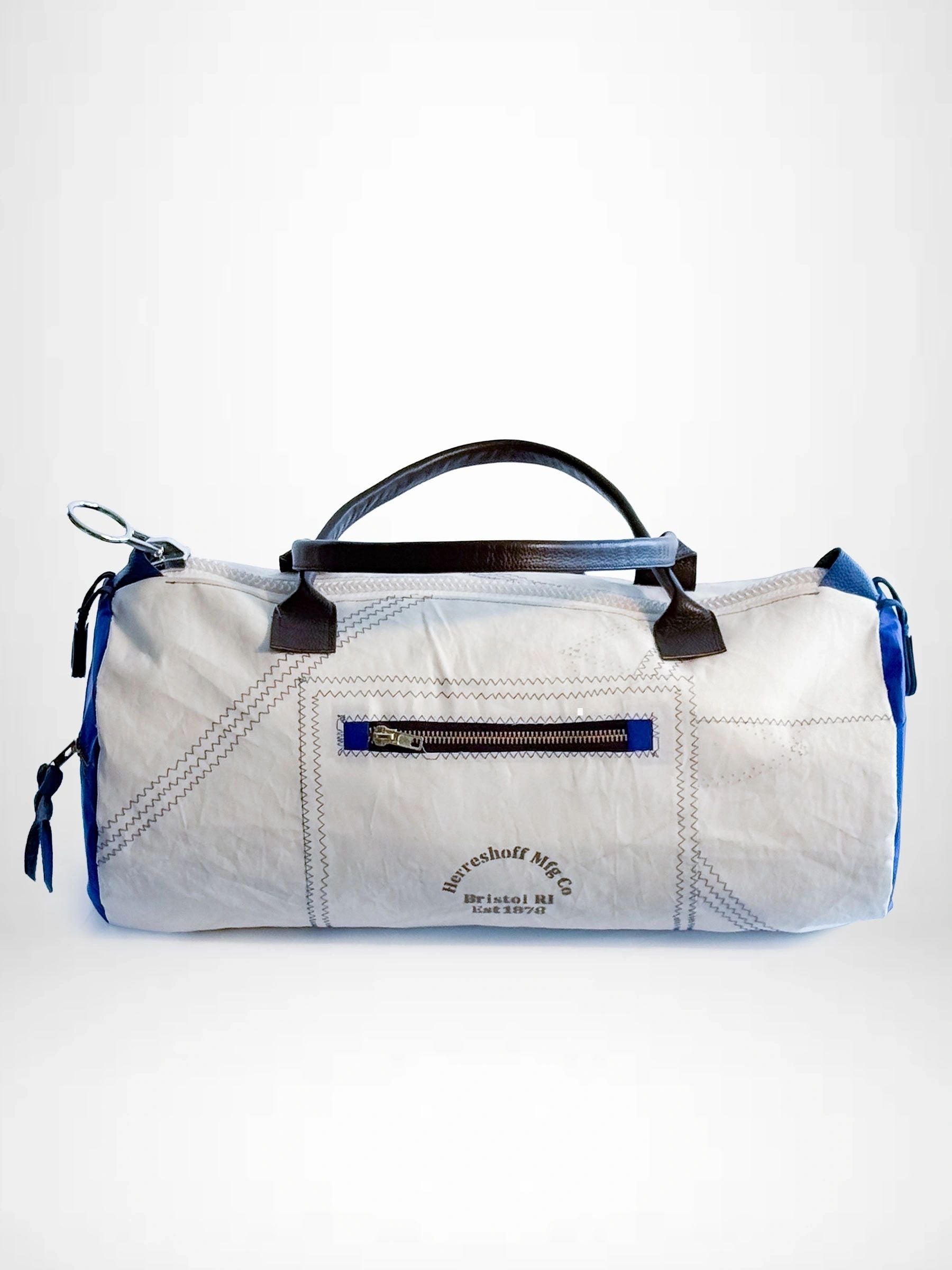 Snap shackles and premium Italian leather straps outside open pocket and an internal zippered pocket.